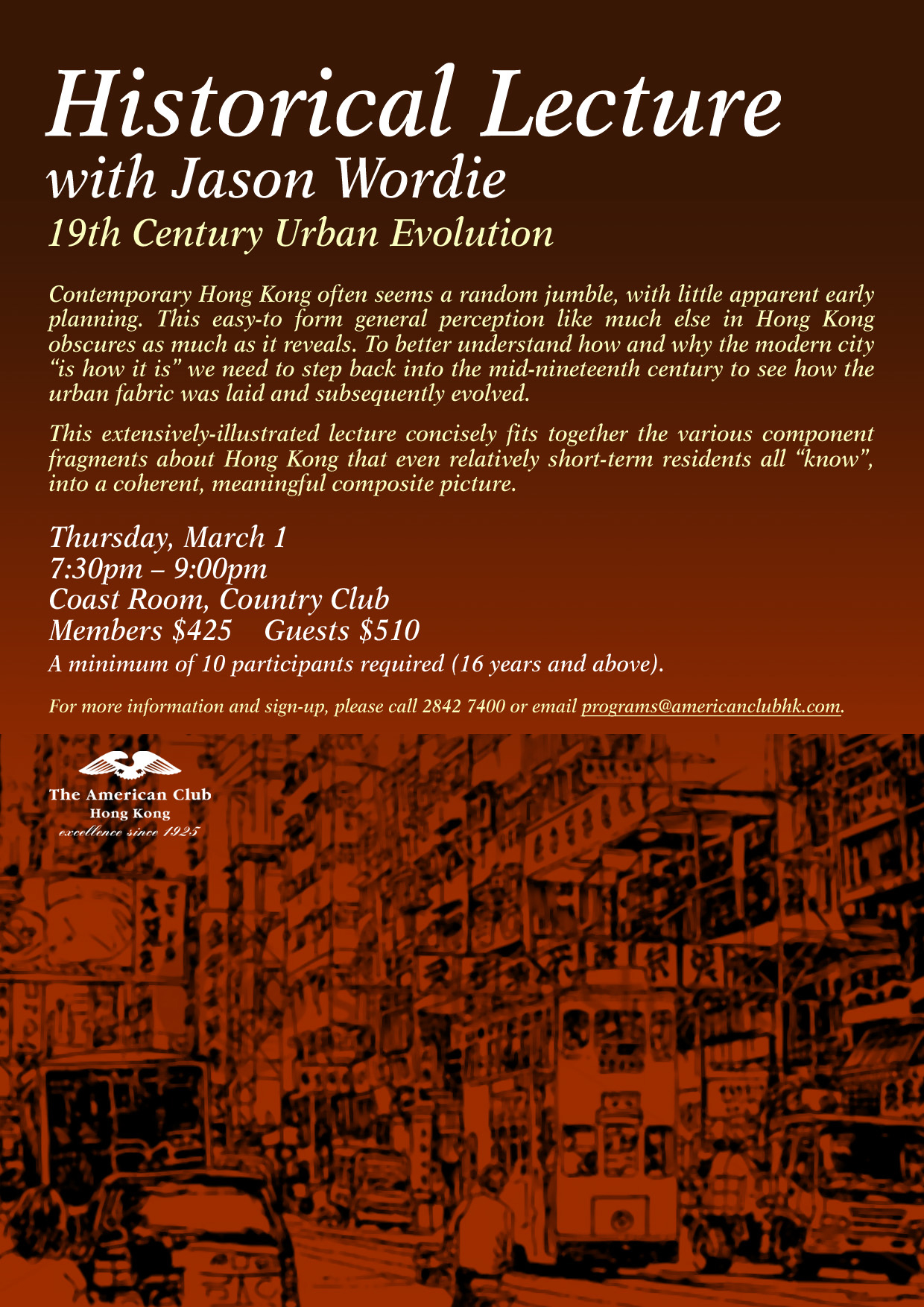 For sign-up, please call 2842 7400 or email programs@americanclubhk.com |